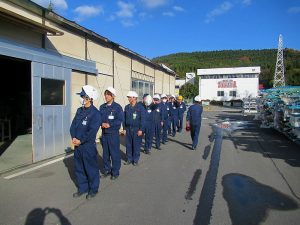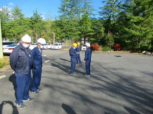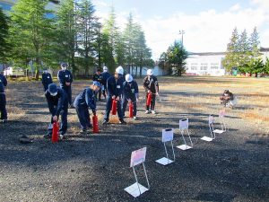 令和7年11月12日佐原では火災を想定した避難訓練と消火訓練を行いました。皆ヘルメット
