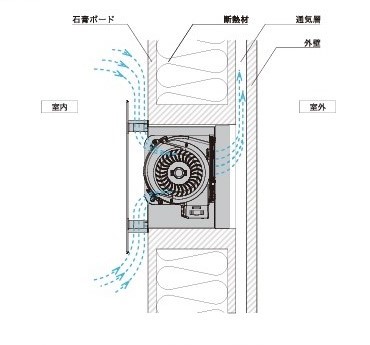 ファンシリーズ壁住宅のシューズクローク・小屋裏収納スペースの排気ファンです。